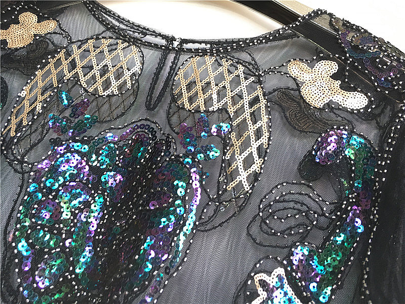 Fashionable women's clothing new trend heavy industry art bead round neck long sleeved base shirt