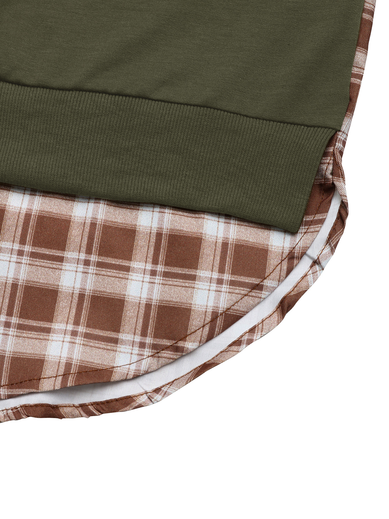 亚马逊2025年欧美跨境外贸秋季新款薄款格纹拼接圆领套头卫衣女