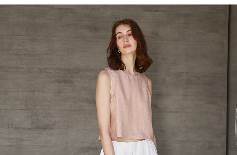 Linen Vest Front and Back Wearable Crop Top Design Sense Women's Sleeveless Loose Waistcoat