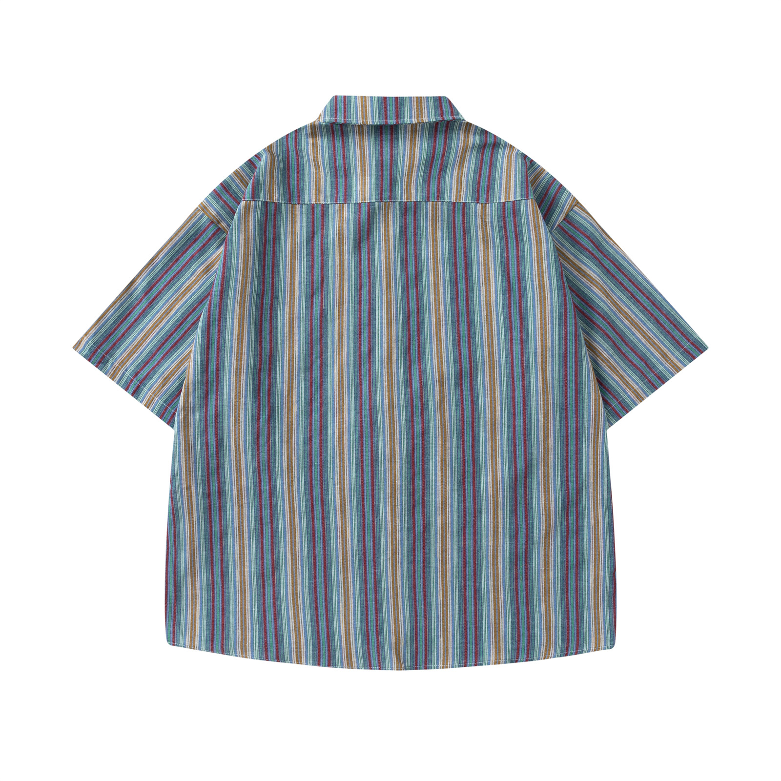 Retro Colorful Striped Short-Sleeved Shirt for Men and Women