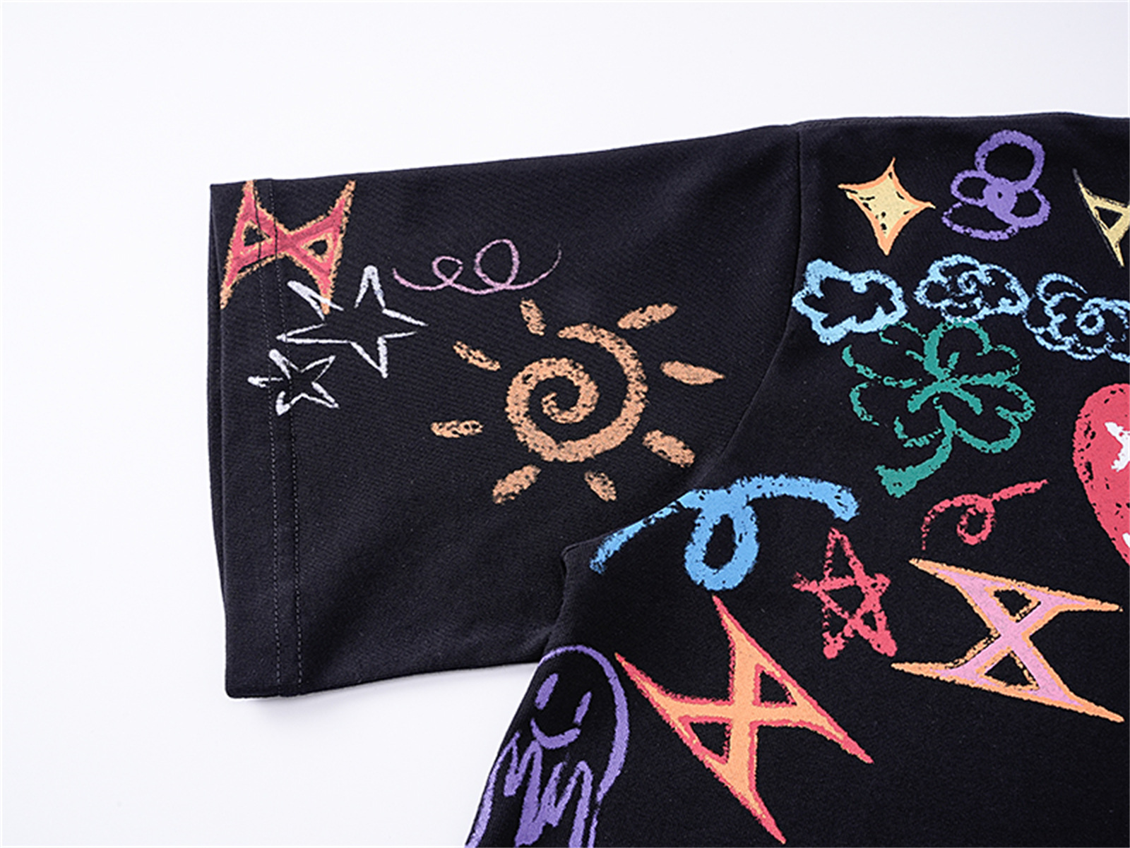 Retro Fun Graffiti Print Pure Cotton Heavyweight Short Sleeve T-Shirt Unisex Loose Casual Couple Top